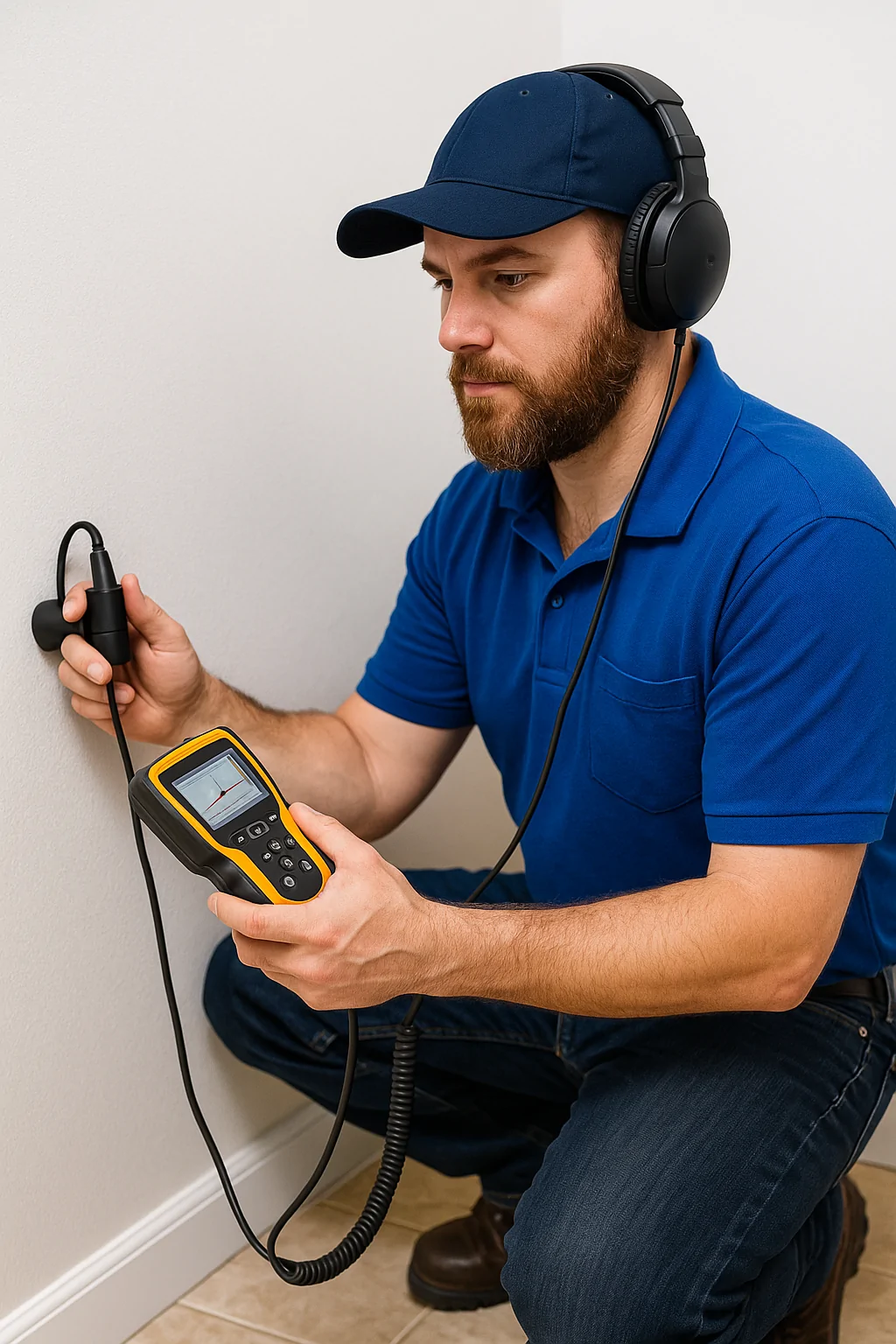 – Using advanced thermal and moisture detection equipment, we locate and fix hidden leaks behind walls, ceilings, and floors — before they cause major damage.